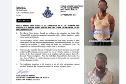 Police Arrest 2 Suspects in Connection with the Robbery & Murder of Mobile Money Vendor at Walewale